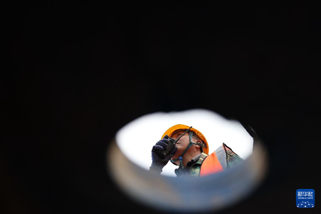 10月12日,中鐵二十局的建設(shè)者在蘭合鐵路本池溝大橋上施工作業(yè)。新華社記者 陳斌 攝