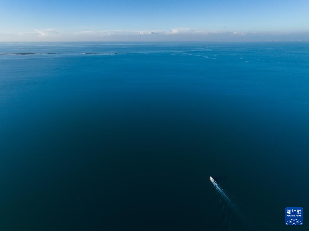 10月18日,一艘游輪行駛在青海湖二郎劍景區(qū)(無(wú)人機(jī)照片)。新華社記者 呂帥 攝