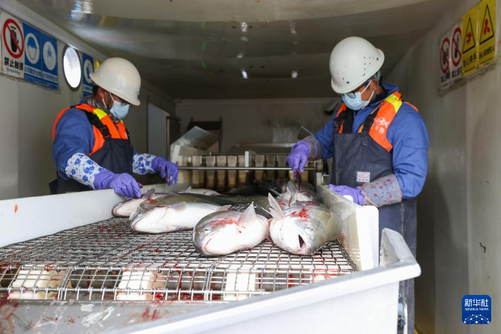 這是10月18日拍攝的龍洋知鮮(青海)股份有限公司降溫出魚平臺(tái)。新華社記者 呂帥 攝