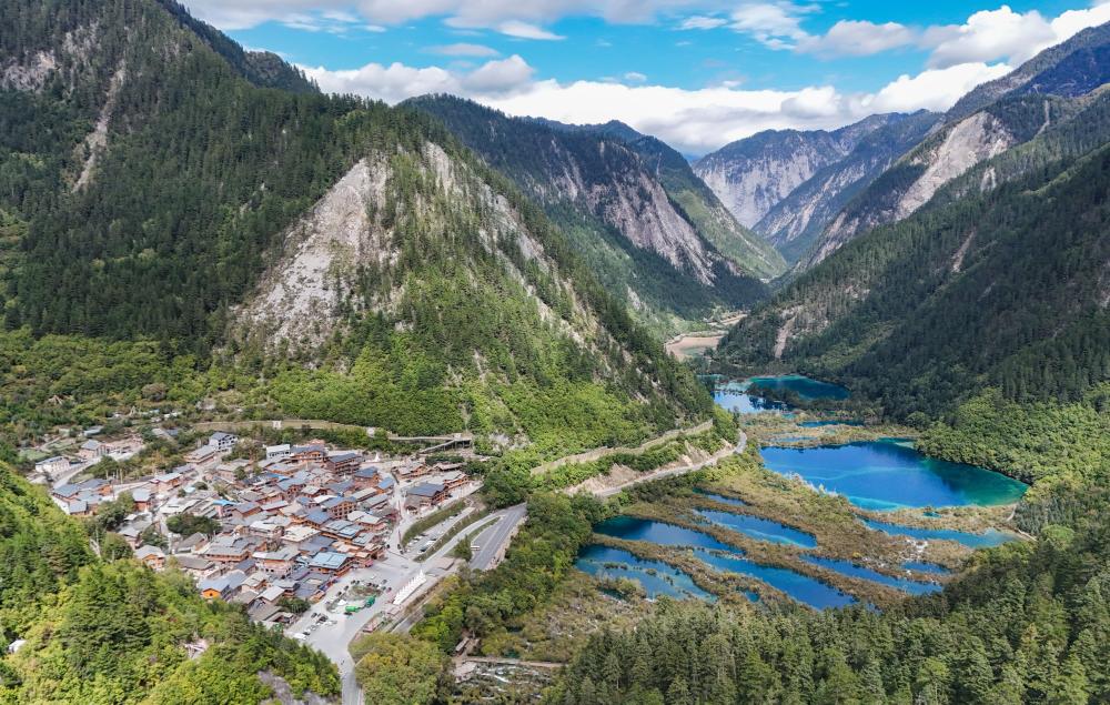 九寨溝景區(qū)內(nèi)的樹正寨和樹正群海。新華社記者 王曦 攝