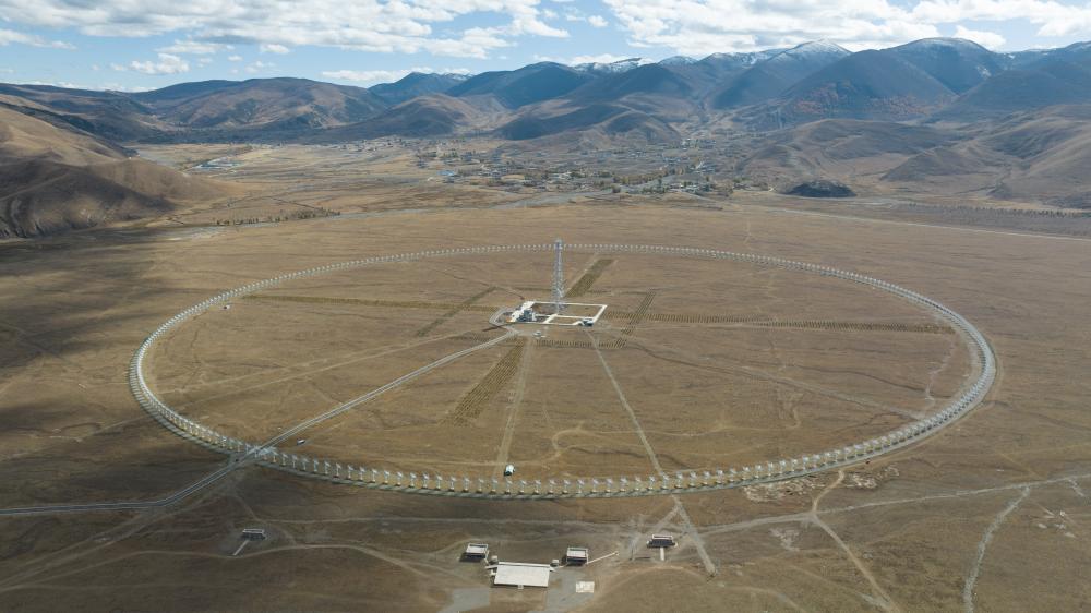 若從天空中鳥(niǎo)瞰,海拔四千多米的“巨石陣”中藏著一個(gè)巨大的“圓盤(pán)”——高海拔宇宙線(xiàn)觀測(cè)站“拉索”(LHAASO)。宇宙線(xiàn)是來(lái)自宇宙空間的高能粒子,被科學(xué)家稱(chēng)為傳遞宇宙大事件的“信使”。