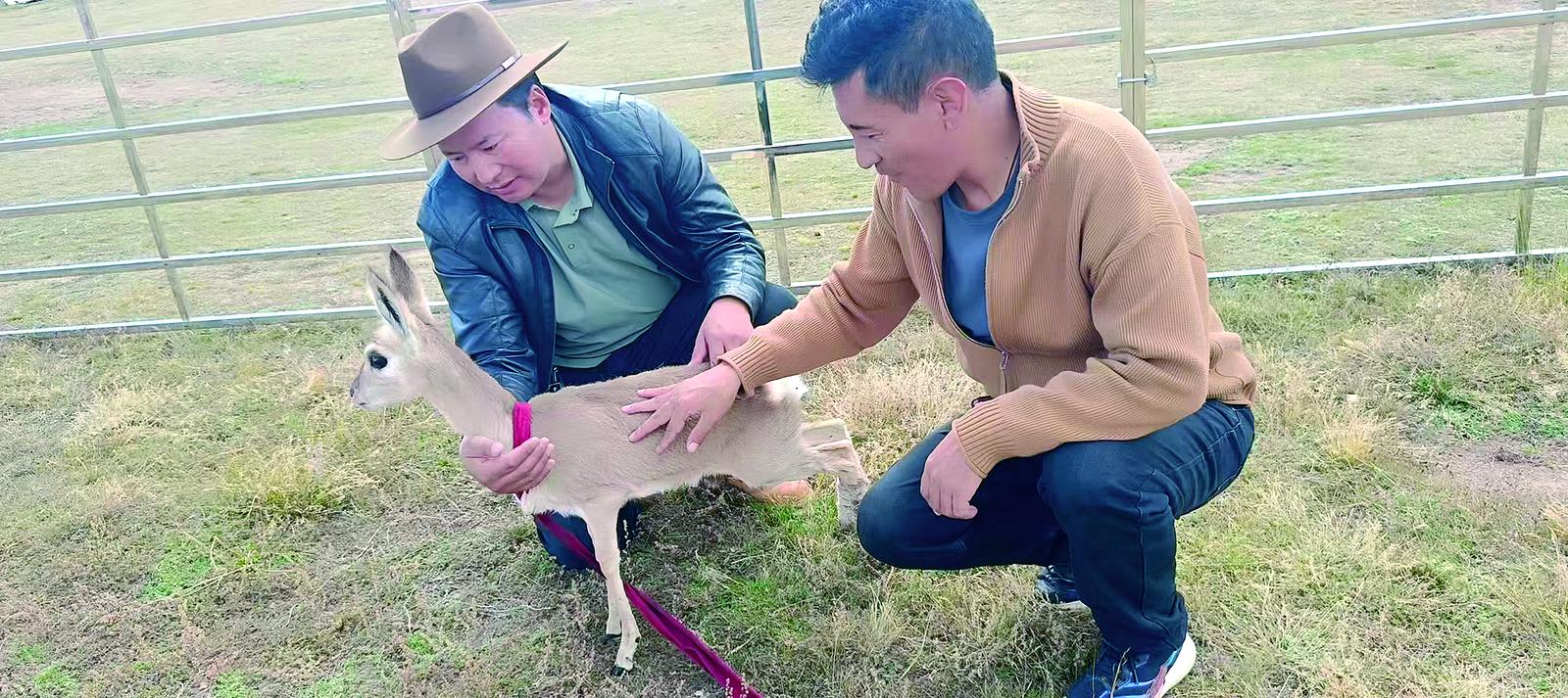 “藏原羚兩只后腿站不起來,我們試圖靠近,但它掙扎得更厲害了?!奔友蚨嘟芎捅緩娒撓伦约旱耐馓?,給藏原羚披上,遮住它的眼睛,等到不再掙扎便輕輕抱起帶去縣上醫(yī)治。