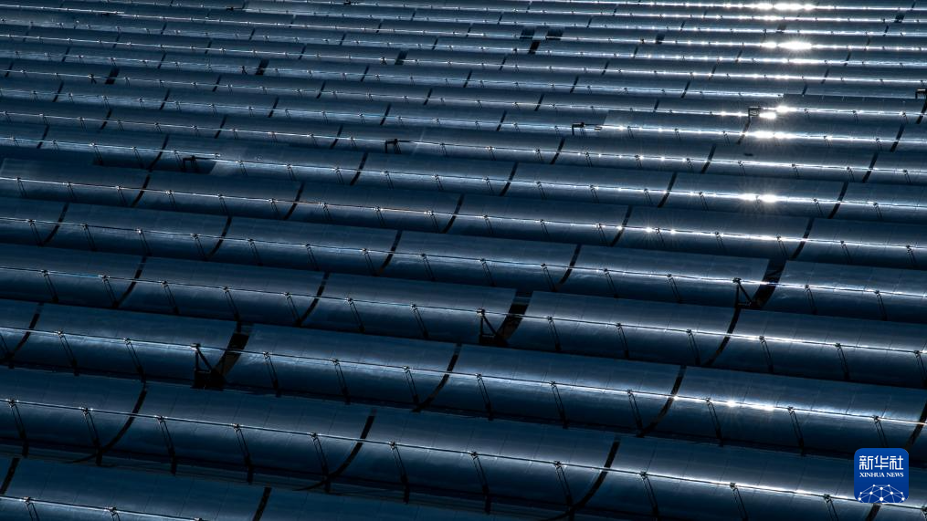 在德令哈市郊,中控50兆瓦塔式光熱電站的光熱塔在太陽(yáng)下折射出耀眼光芒,站在塔下,一塊塊巨大的定日鏡將陽(yáng)光精準(zhǔn)反射到塔頂,猶如身處科幻世界。