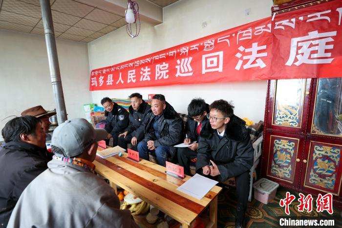 資料圖為瑪多縣人民法院巡回法庭下鄉(xiāng)為牧民提供司法服務(wù)。薛蒂 攝。