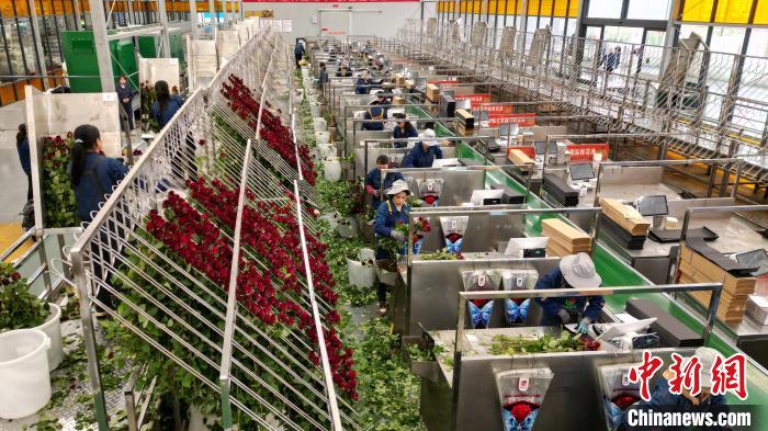 目前,當?shù)亟ǔ擅娣e20萬平方米高新智能化溫室,鮮花四季盛開。記者看到,棚頂紅色的全自動補光燈正在為玫瑰“延長光照時長”。精準控制營養(yǎng)液成分和濃度的智能化水肥一體化系統(tǒng)、自動化分選等高新設備投入,科技種植和品質上升,讓臨夏成為中國重要的優(yōu)質鮮切花生產(chǎn)基地,日產(chǎn)20萬枝鮮切花,海內(nèi)外訂單不斷。