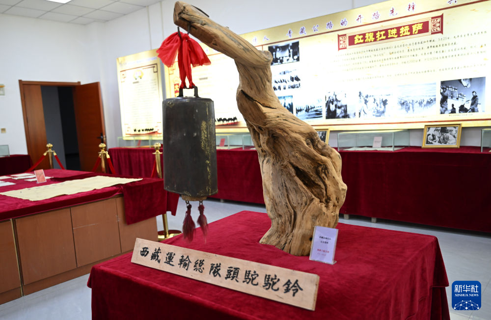 這是11月26日拍攝的陳列在莫河駱駝場青藏駝隊(duì)歷史陳列館的西藏運(yùn)輸總隊(duì)頭駝駝鈴。新華社記者 張龍 攝