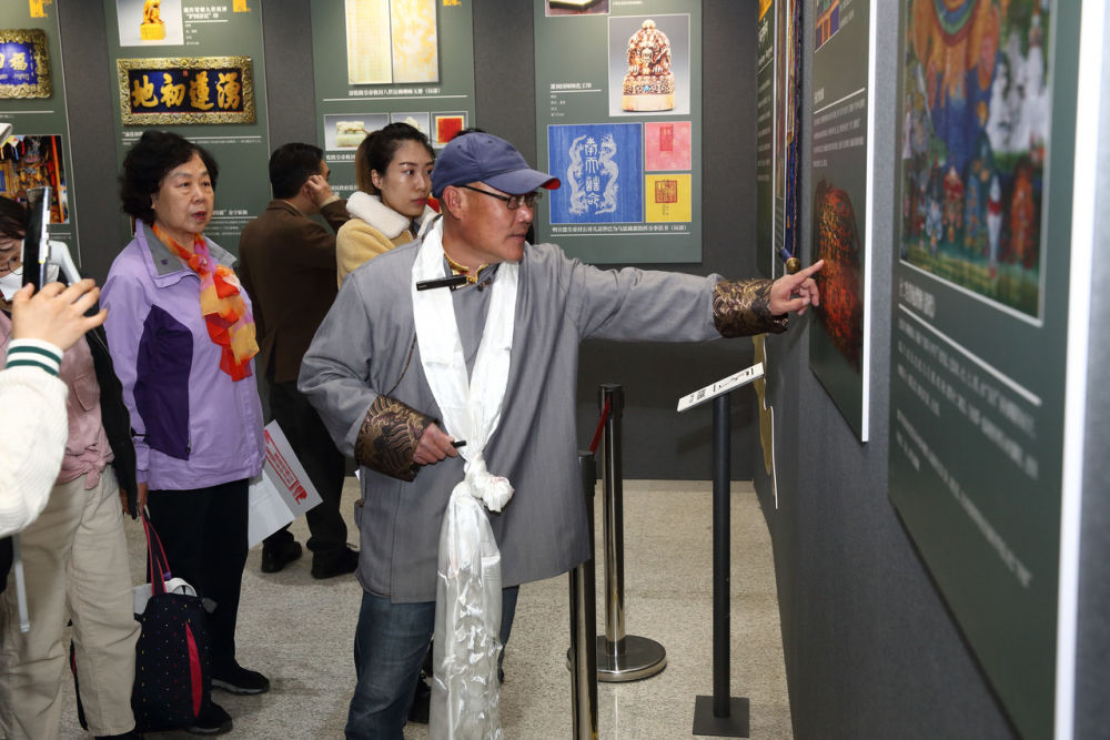 范久輝在“高原中華龍”展覽上進行講解。受訪者供圖