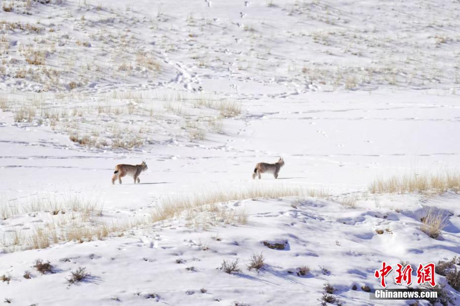 日前,在青海省海西州德令哈市尕海鎮(zhèn)陶哈村,攝影愛好者用鏡頭捕捉到兩只猞猁在雪山草地中悠然踱步的珍貴畫面。猞猁外形似貓,但比貓?bào)w形大,屬于中型猛獸,耳朵尖端長有黑色聳立的簇毛,是一種離群獨(dú)居的野生動(dòng)物。近年來,隨著柴達(dá)木盆地生態(tài)保護(hù)力度加強(qiáng),當(dāng)?shù)財(cái)z影愛好者時(shí)常在溝里鄉(xiāng)地區(qū)拍攝到雪豹、猞猁、兔猻、狼、巖羊等多種高原野生動(dòng)物。圖為兩只猞猁在雪地里漫步。