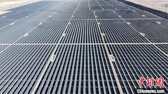 圖為12月8日,青海海西格爾木,魯能海西州多能互補(bǔ)集成優(yōu)化國(guó)家示范工程中整齊排列的光伏板。(無(wú)人機(jī)圖片)薛蒂 攝