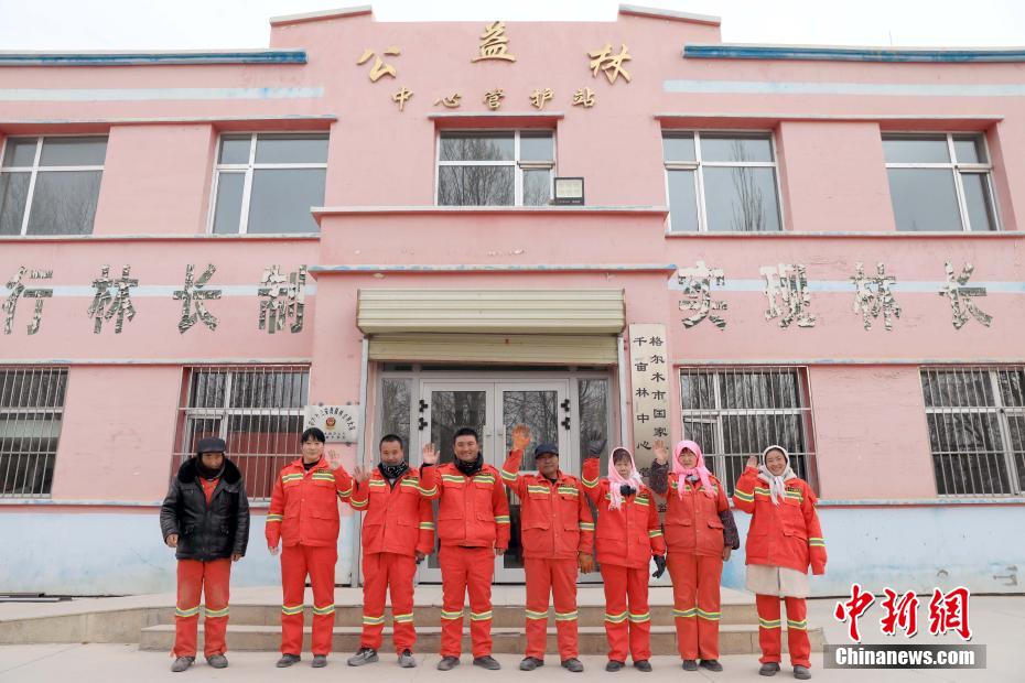 12月9日,護(hù)林員在辦公樓前合影。中新社記者 王磊 攝