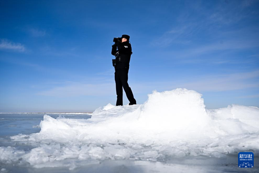1月9日,剛察縣青海湖派出所民警俄吾在巡護(hù)青海湖。新華社記者 張龍 攝