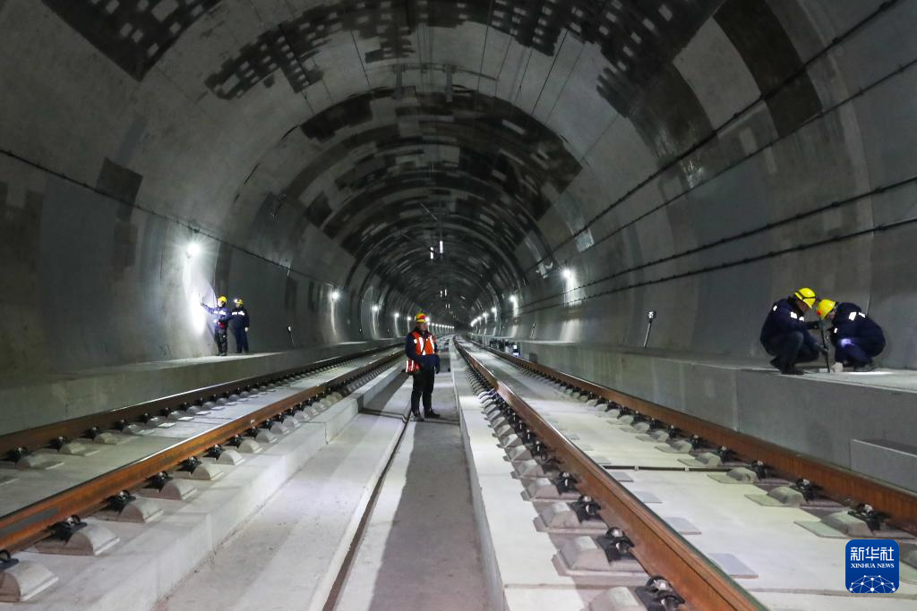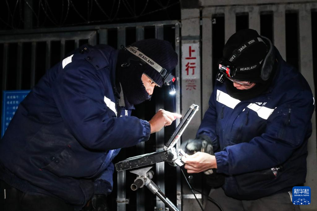 1月14日凌晨,橋隧工在新烏鞘嶺隧道內(nèi)開展全面檢查。新華社記者 郎兵兵 攝