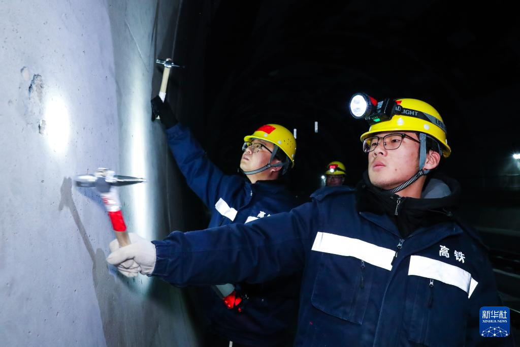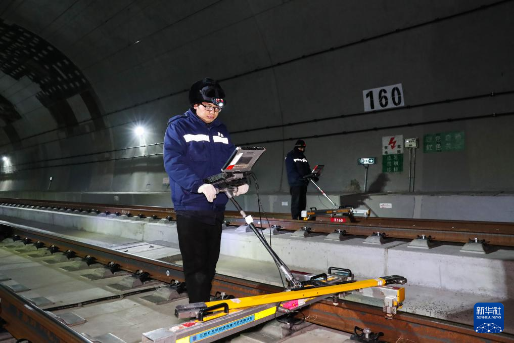 面對首次春運(yùn)“大考”,這群守護(hù)者頂著刺骨寒風(fēng),鉆隧道、爬高山,在列車停運(yùn)的深夜對隧道及線路仔細(xì)檢查,為旅客的春運(yùn)回家路保駕護(hù)航。