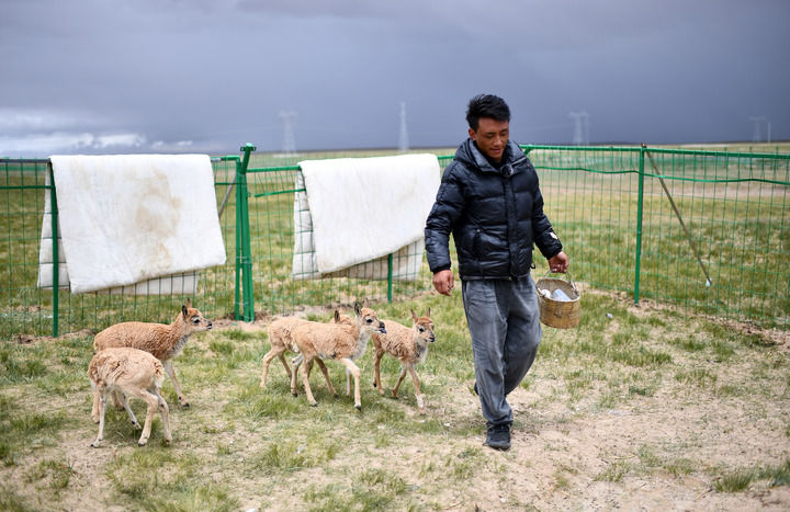 在索南達(dá)杰保護(hù)站駐站的巡山隊(duì)員江措告訴記者,在保護(hù)站后面的網(wǎng)圍欄內(nèi),有隊(duì)員們從卓乃湖救助回來(lái)的小藏羚羊。