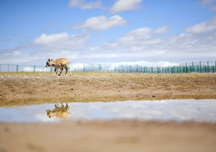 藏羚羊在可可西里國(guó)家級(jí)自然保護(hù)區(qū)索南達(dá)杰保護(hù)站野生動(dòng)物救助中心活動(dòng)(2023年5月30日攝)。新華社記者 薛玉斌 攝