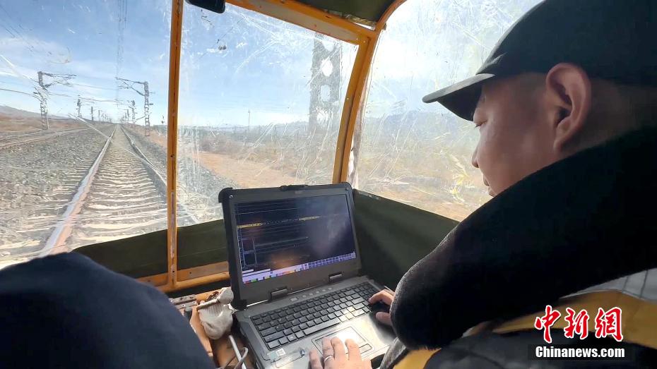 2月19日,青海省海西蒙古族藏族自治州德令哈市境內(nèi),中國鐵路青藏集團(tuán)有限公司德令哈工務(wù)段探傷車間工作人員在“天窗”期為鐵路鋼軌進(jìn)行“探傷”作業(yè)。重達(dá)600斤的雙軌“探傷”車以不超過12公里/小時的時速勻速行進(jìn),工作人員通過觀測屏上的彩色信號波紋,精確檢測鋼軌傷損。2025年春運(yùn)期間,“探傷”車?yán)塾?jì)完成近900公里的線路檢測工作。圖為工作人員查看波形圖。