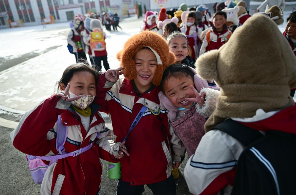 3月5日,瑪多縣民族寄宿制小學(xué)學(xué)生在課間玩耍。 新華社記者 張龍 攝
