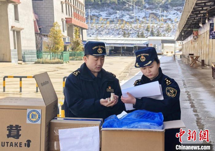 海關(guān)關(guān)員在香格里拉市食用菌出口企業(yè)開展現(xiàn)場監(jiān)管。楊梟 攝