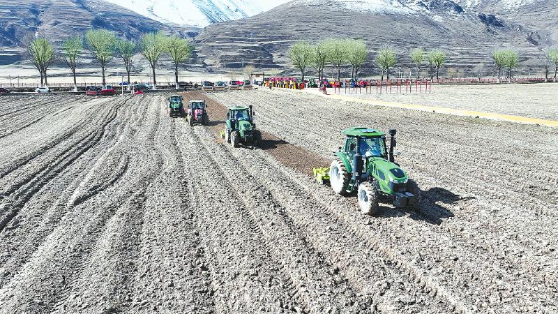 4月8日,四川省甘孜藏族自治州甘孜縣舉行春耕開(kāi)耕儀式,數(shù)臺(tái)大型機(jī)械配合作業(yè),耕地、整地、施肥、播種等一氣呵成。目前,該縣已經(jīng)實(shí)現(xiàn)青稞“耕種管收”全程機(jī)械化。