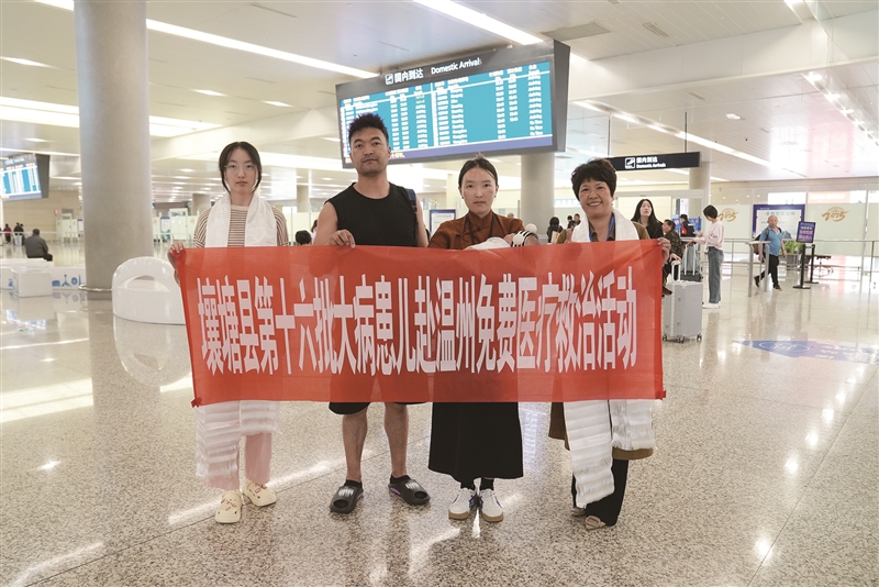 “你們不僅讓我寶寶有了獲得新生的機(jī)會(huì),更是穩(wěn)住了我們?nèi)胰说男?。”在接機(jī)口,阿秀夫婦向前來迎接他們的“溫心守護(hù)”團(tuán)隊(duì)獻(xiàn)上了哈達(dá),并表達(dá)感激之情。接下來,他們5個(gè)月大的兒子小崗(化名)將在溫州醫(yī)科大學(xué)附屬第二醫(yī)院、育英兒童醫(yī)院接受手術(shù)治療。