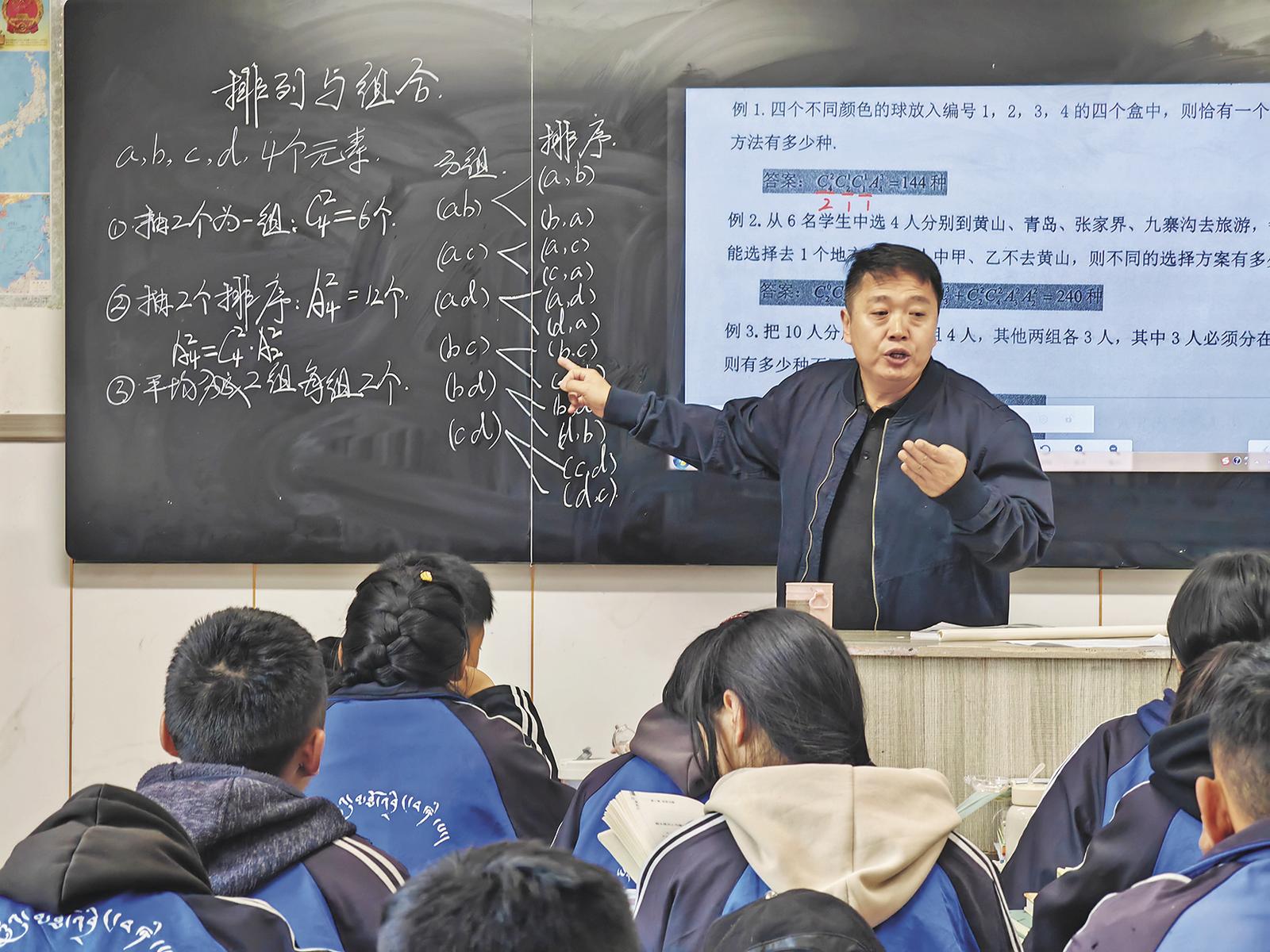 2023年5月,孫鳳軍主動(dòng)請纓踏上海拔4000米的玉樹高原,展開自己的援青支教生涯。初到玉樹州第四民族高級中學(xué),孫鳳軍直觀感受到,北京援建的校舍靜美安然、教育硬件資源與其他省市差距不大,但軟件資源相對薄弱單一,學(xué)生手中只有“人教版”的數(shù)學(xué)課本,對高中數(shù)學(xué)知識(shí)的掌握程度停留在基礎(chǔ)層面,題型見得少、解題思維僵化,高考平均數(shù)學(xué)成績長年徘徊在及格線以下。