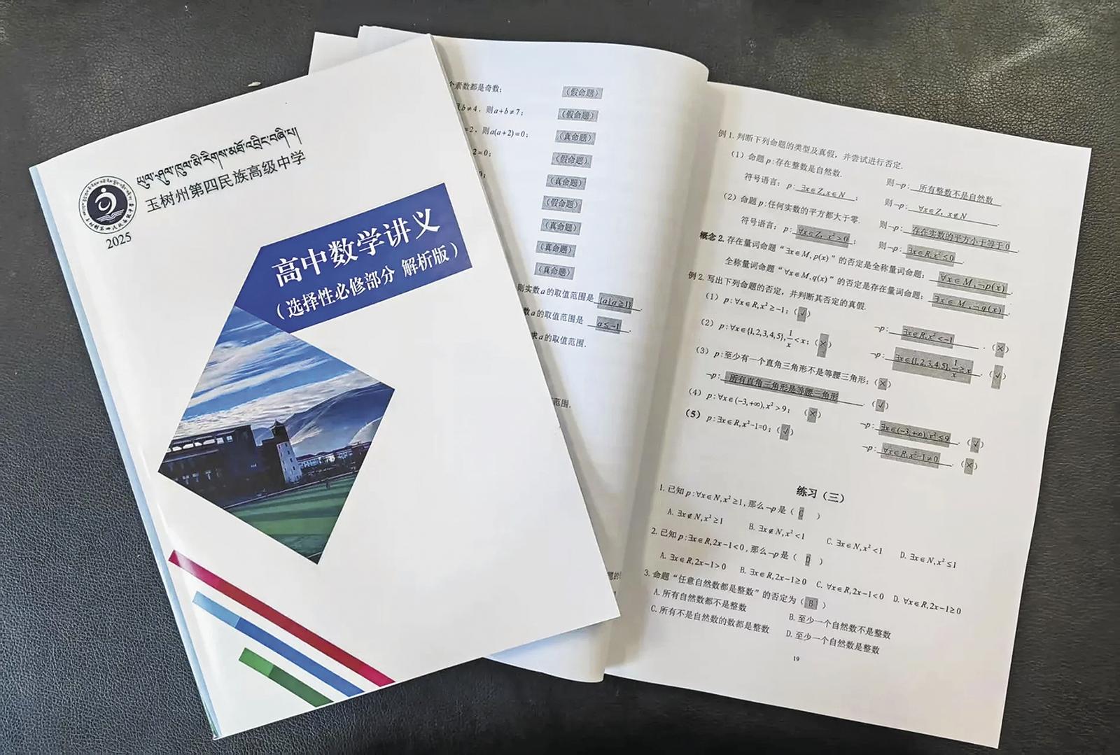 6月16日,在青海省玉樹藏族自治州第四民族高級中學(xué)高二7班的教室內(nèi),孩子們每個(gè)人手里拿著一本《高中數(shù)學(xué)講義(必修部分)解析版》認(rèn)真翻看。