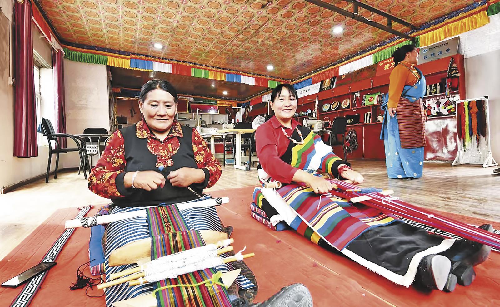 產(chǎn)業(yè)協(xié)作的熱潮之下,文化的根脈正在這片土地深扎。走進(jìn)崗巴布民族手工藝品合作社,氆氌的經(jīng)緯間流淌著吐蕃時(shí)期的紋樣,掐絲唐卡的金線里纏繞著藏傳佛教的智慧,而講解這些工藝品的,是能用流利漢語(yǔ)交流的藏族社員三木吉。