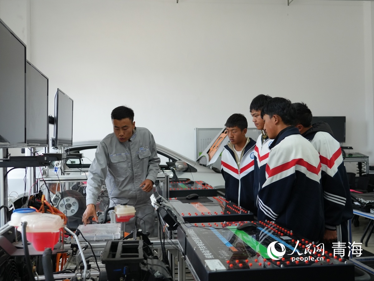 果洛州職業(yè)技術學校汽車運用與維修專業(yè)學生學習。人民網(wǎng)記者 楊啟紅 攝