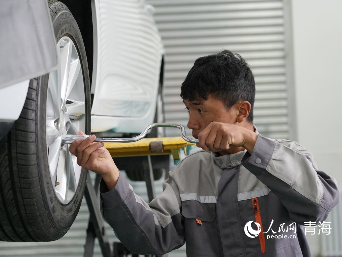 果洛州職業(yè)技術學校汽車運用與維修專業(yè)學生實操。人民網(wǎng)記者 楊啟紅 攝