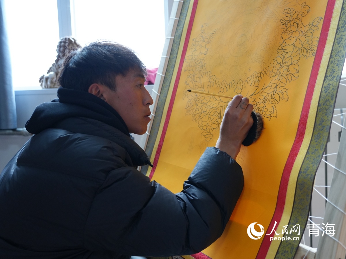 唐卡工藝美術實訓。人民網(wǎng)記者 楊啟紅 攝