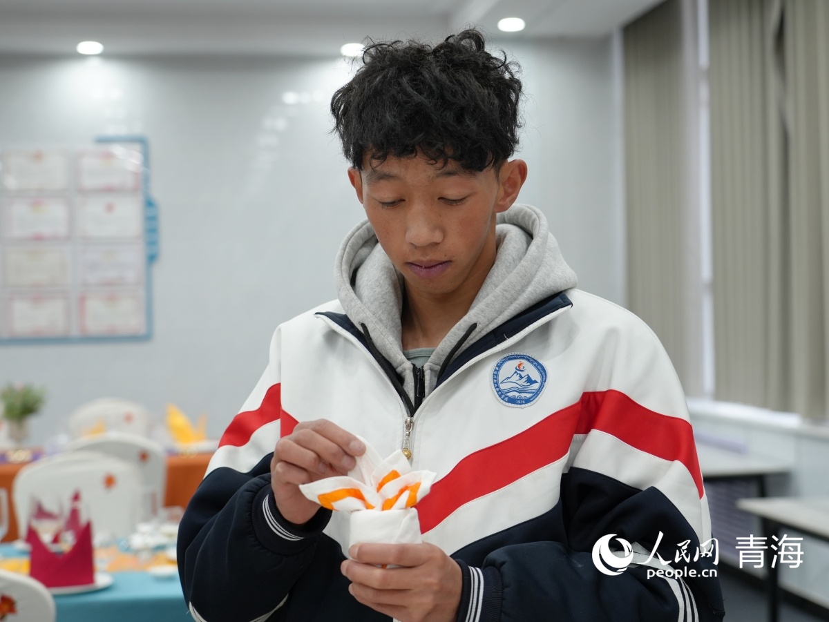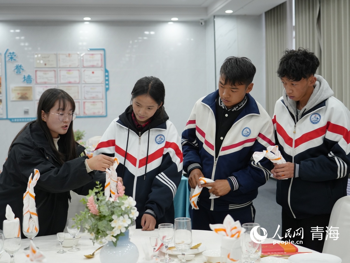 高星級飯店運營與管理專業(yè)學生學習餐巾折花。人民網(wǎng)記者 楊啟紅 攝