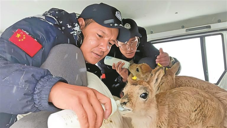 然而,巡護(hù)工作遠(yuǎn)未結(jié)束,更為重要的任務(wù)是將3個(gè)小生命安全帶回索南達(dá)杰保護(hù)站藏羚羊救護(hù)中心?!?025年在卓乃湖區(qū)域,保護(hù)站救助了3只與母親失散的幼小藏羚羊。這些脆弱的小生命,無(wú)一例外都面臨著生死考驗(yàn),有的不幸被母羊遺棄,有的則是在狼群的驚擾襲擊中與羊群失散?!?/p>