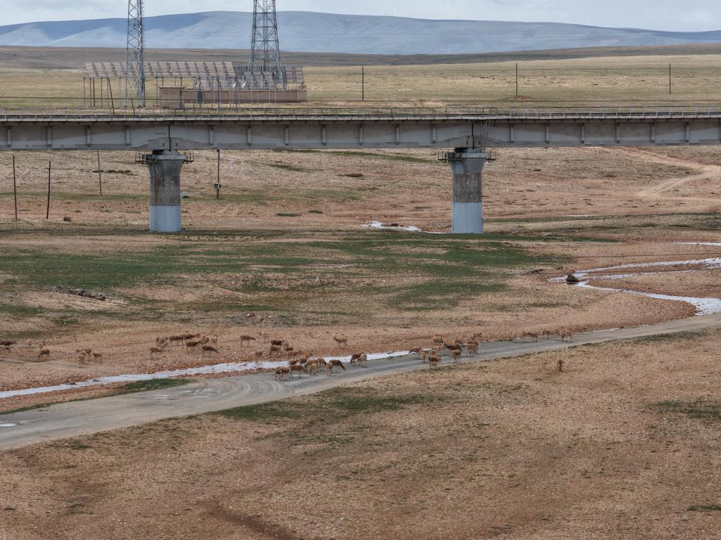 2025年8月14日,在可可西里拍攝的回遷中的藏羚羊。新華社記者 李占軼 攝