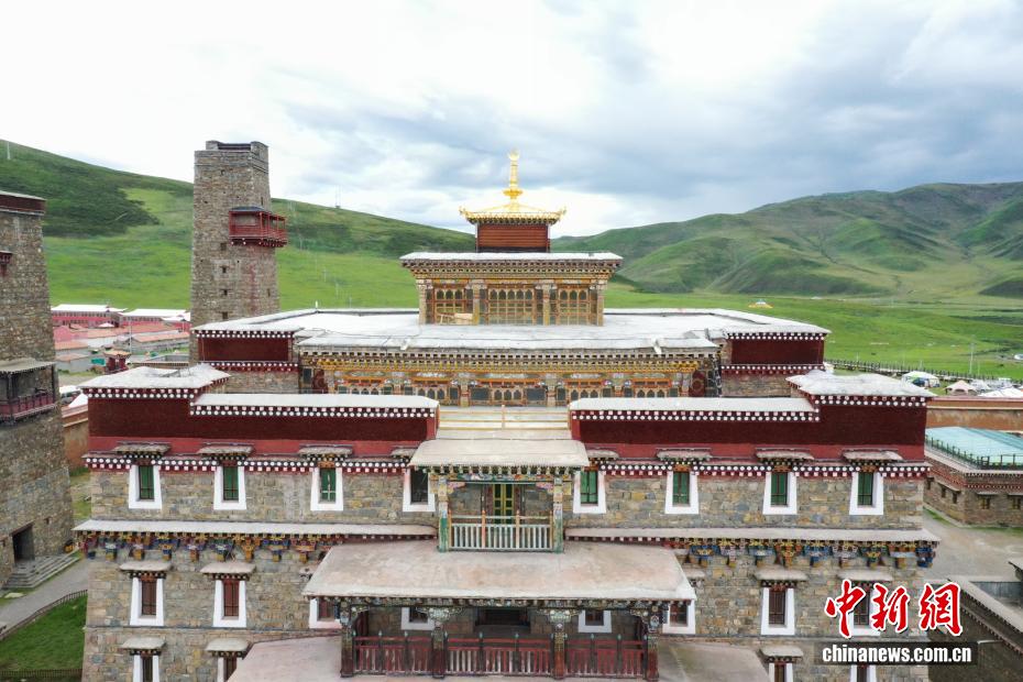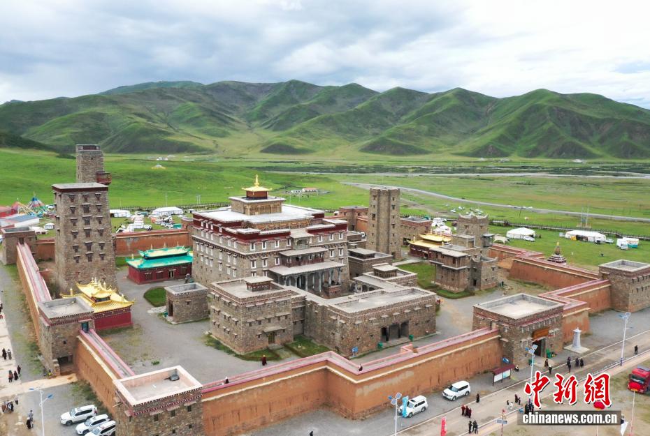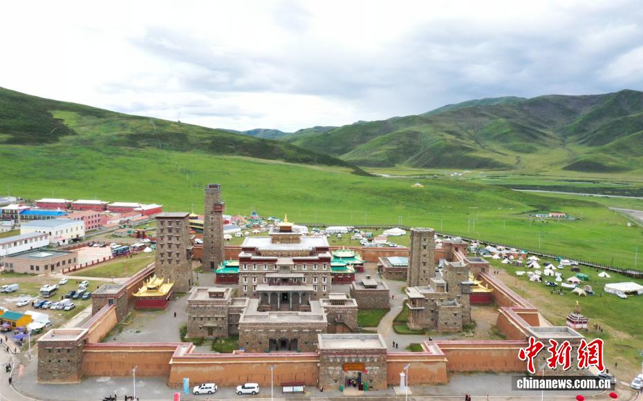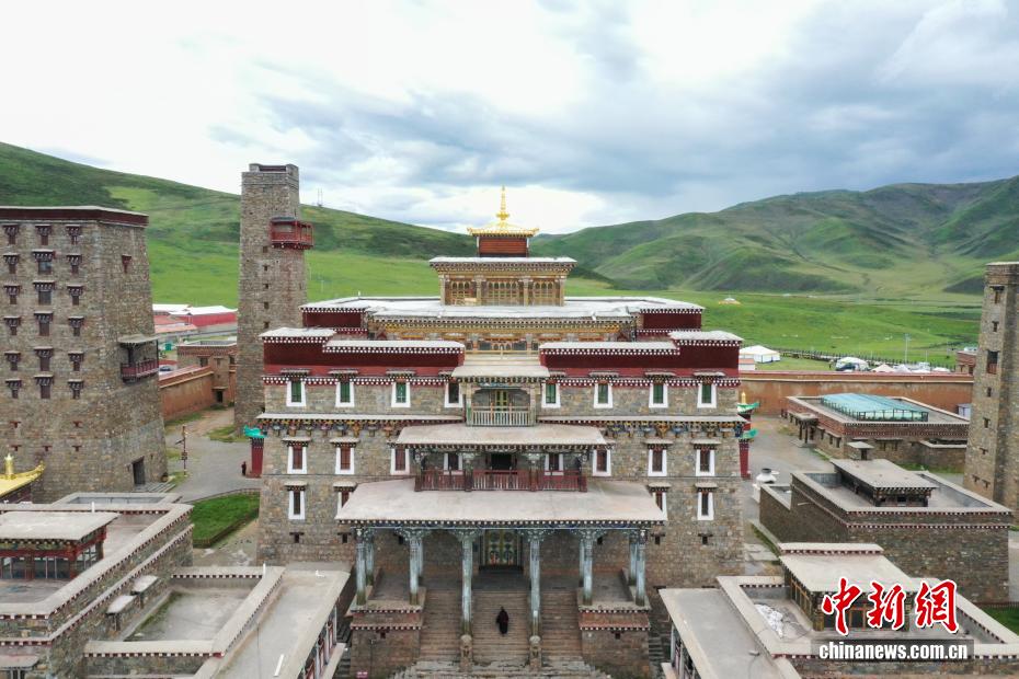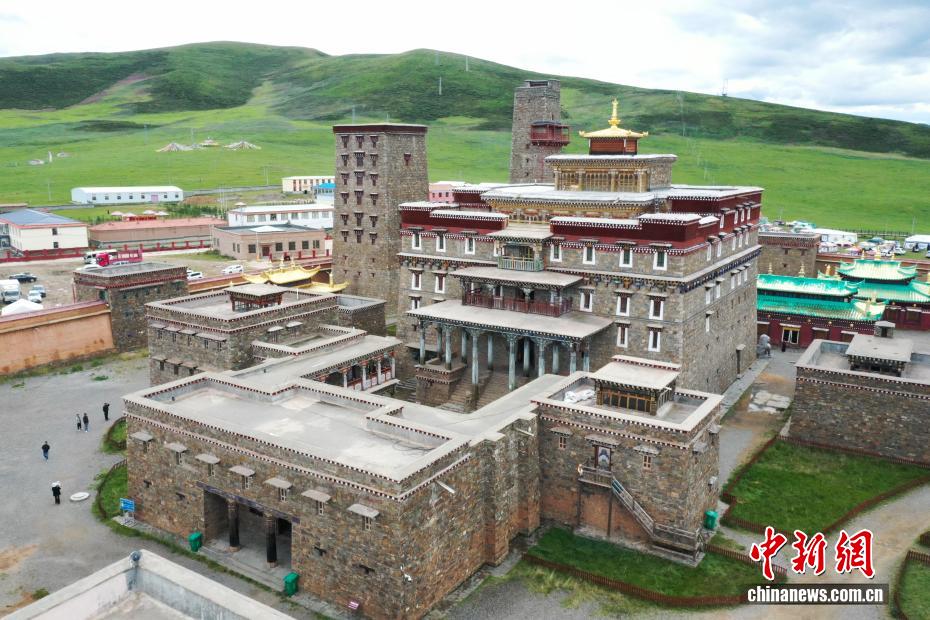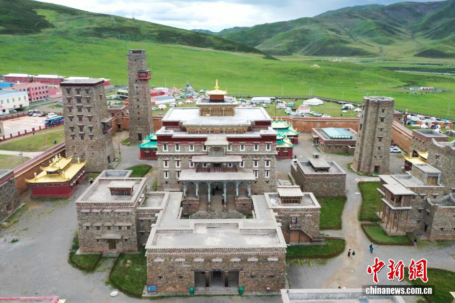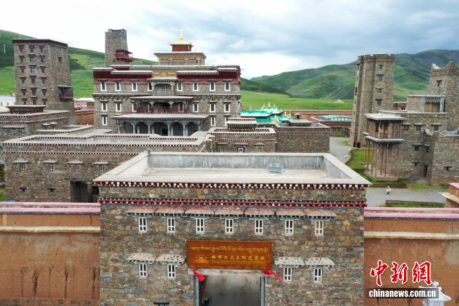 8月25日,航拍坐落于青海省果洛藏族自治州達日縣境內(nèi)的格薩爾王獅龍宮殿。宮殿占地面積180平方米,兼具文化傳習(xí)所、歷史民俗博物館及非遺傳承基地功能,被列為青海省格薩爾文化研究基地。(無人機照片)中新社記者 馬銘言 攝