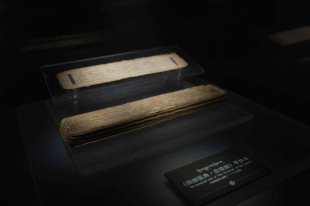 圖為青海藏醫(yī)藥文化博物館展出的《四部醫(yī)典·后續(xù)部》手抄本。新華社記者 杜笑微 攝