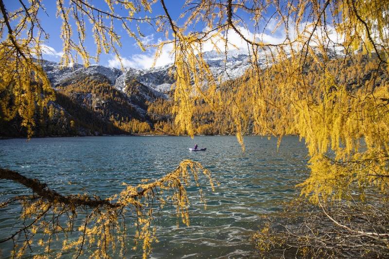 近期,海拔4000多米的四川省甘孜藏族自治州道孚縣甲玉拉措景區(qū)迎來一年中最美的季節(jié)。澄澈如鏡的湖面倒映著金黃的落葉杉林,遠(yuǎn)處雪山皚皚,美麗的高原秘境畫卷吸引著八方游客。