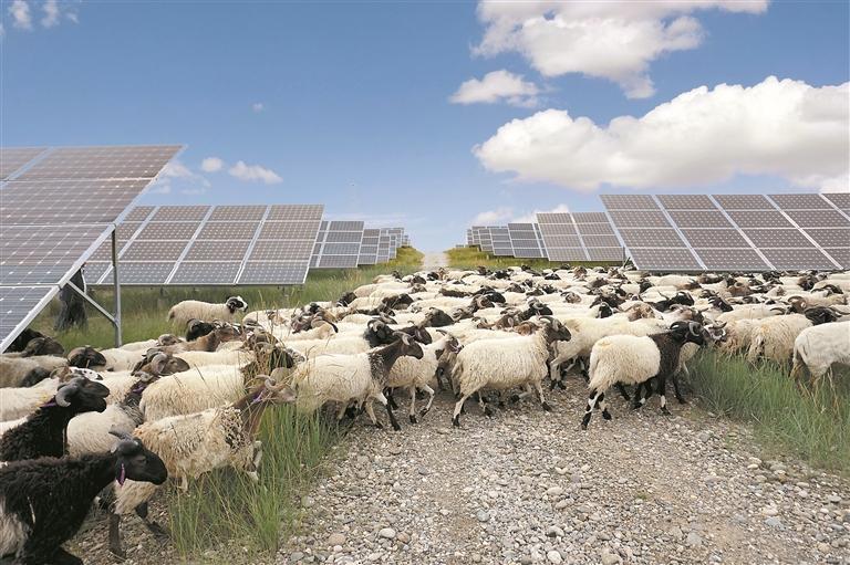 現(xiàn)在,每當葉多騎著摩托車穿梭在光伏園區(qū),看著羊群在深藍色的光伏板下悠閑吃草,心里就格外踏實。從“不毛之地”到“陽光電站”,從游牧牧民到光伏牧民,塔拉灘的變遷,書寫著生態(tài)與經(jīng)濟雙贏的動人篇章。而那些在光伏板下放牧的牧民們,也繼續(xù)在這片土地上,書寫著屬于他們的“陽光財富”故事……