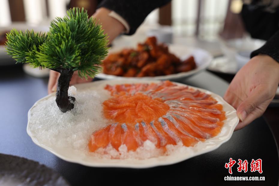 12月26日,位于四川省阿壩州理縣薛城鎮(zhèn)甲米村的高原特色冷水魚養(yǎng)殖基地內(nèi),工作人員展示當(dāng)日打撈的虹鱒魚魚片。該基地處于海拔超2000米的孟屯河畔,水源來自高海拔地區(qū)的雪山融水,年均水溫9-10℃,目前養(yǎng)殖有鱒魚、黃河魚、雅魚等10萬余尾?;貙?yōu)良生態(tài)資源與現(xiàn)代養(yǎng)殖技術(shù)結(jié)合,通過“魚經(jīng)濟(jì)”發(fā)展,豐富業(yè)態(tài)、增加就業(yè)、農(nóng)旅融合壯大了該村集體經(jīng)濟(jì),同時拓寬了村民增收致富渠道。