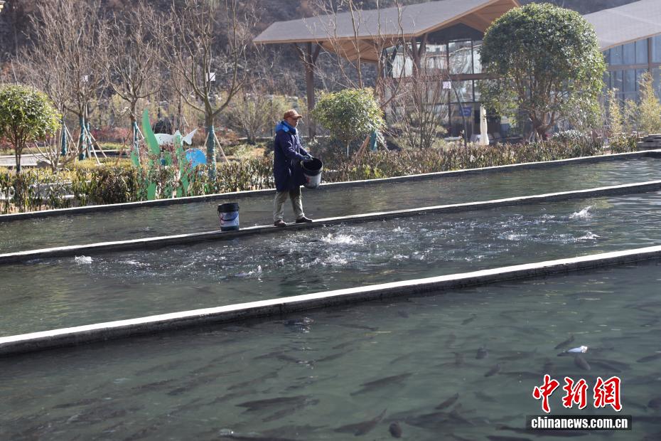 12月26日,位于四川省阿壩州理縣薛城鎮(zhèn)甲米村的高原特色冷水魚養(yǎng)殖基地內(nèi),工作人員進(jìn)行喂料作業(yè)。該基地處于海拔超2000米的孟屯河畔,水源來自高海拔地區(qū)的雪山融水,年均水溫9-10℃,目前養(yǎng)殖有鱒魚、黃河魚、雅魚等10萬余尾。基地將優(yōu)良生態(tài)資源與現(xiàn)代養(yǎng)殖技術(shù)結(jié)合,通過“魚經(jīng)濟(jì)”發(fā)展,豐富業(yè)態(tài)、增加就業(yè)、農(nóng)旅融合壯大了該村集體經(jīng)濟(jì),同時拓寬了村民增收致富渠道。