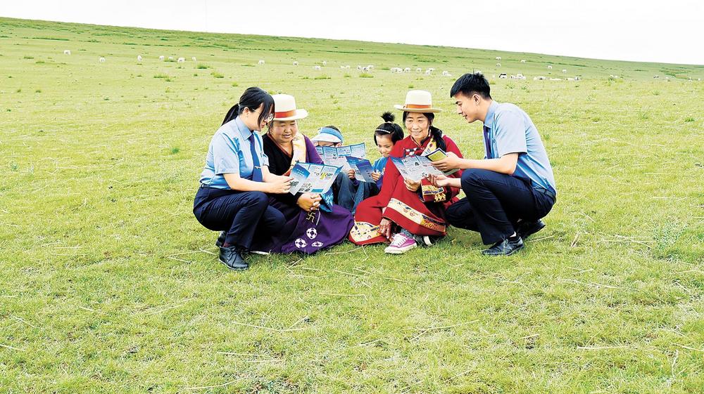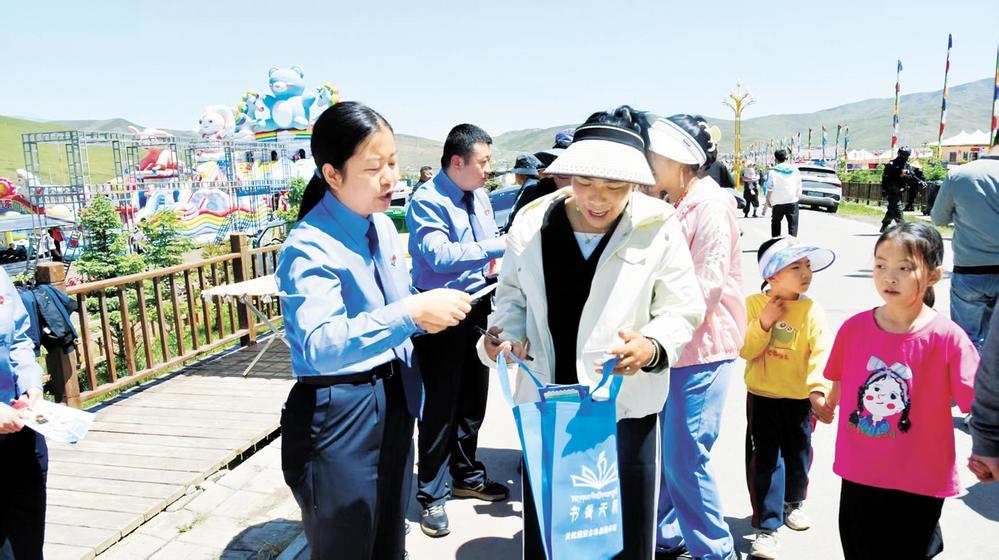 天??h檢察院檢察干警深入牧區(qū)宣傳“天祝白牦?!逼放票Wo(hù)法律知識。