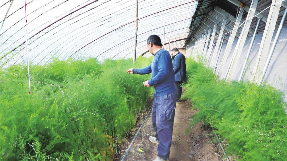 隆冬時節(jié),武威市天??h松山鎮(zhèn)中大溝村的日光溫室里暖意融融、綠意盎然。走進(jìn)種植戶張泉的日光溫室大棚里,一株株青翠的蘆筍苗長勢喜人,他正熟練地進(jìn)行田間管理。張泉流轉(zhuǎn)14座日光溫室種植優(yōu)質(zhì)蘆筍,率先嘗到了特色種植的甜頭。