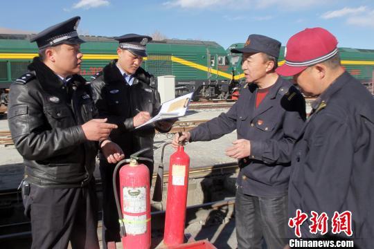 圖為拉薩鐵路公安處民警對站區(qū)重點部位開展消防安全大檢查。 湯成俊 攝