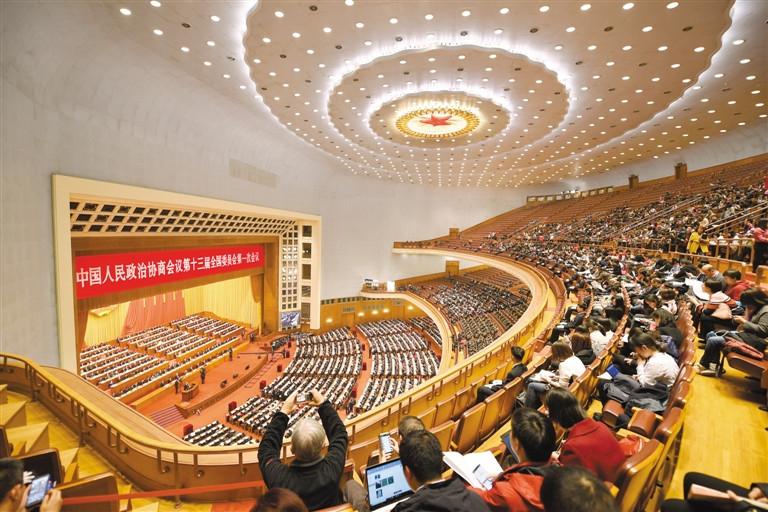 3月3日,全國政協(xié)十三屆一次會(huì)議在北京人民大會(huì)堂開幕。圖為大會(huì)現(xiàn)場(chǎng)。記者 旦增西旦 攝