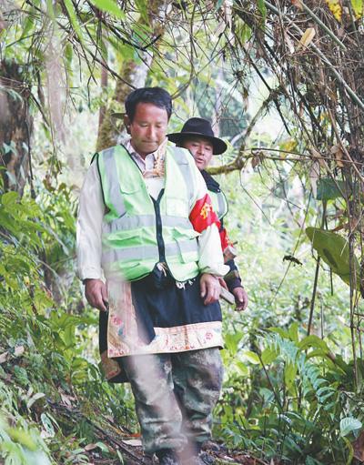 墨脫鎮(zhèn)巴日村護林員在密林中巡護。鄧建勝攝