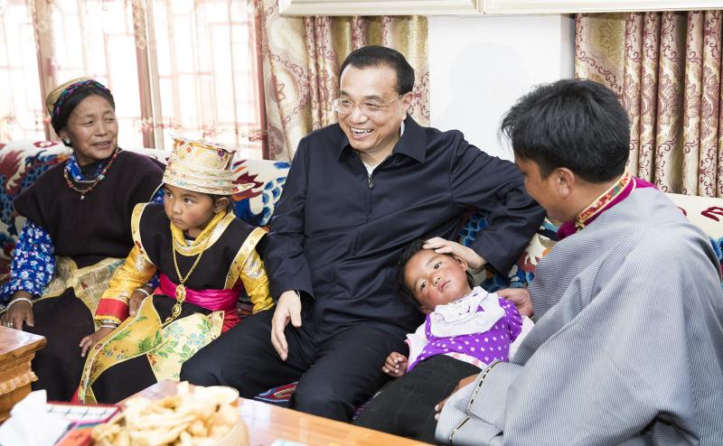 李克強總理7月25日到西藏自治區(qū)考察。首先來到林芝,一下飛機直奔米林縣羌納鄉(xiāng)西嘎門巴村。這是一個移民村,村民由貧困地區(qū)搬遷而來。李克強走進村民貢桑家中,和他們一家6口坐在沙發(fā)上拉起家常??偫碓敿氃儐?,家里主要收入來源是什么?一年掙多少?看病和孩子上學(xué)方便嗎?現(xiàn)在還有什么困難?貢桑說,他家從交通不便的墨脫縣搬遷到這里,如今靠務(wù)農(nóng)、土地流轉(zhuǎn)、旅游接待等,全家年收入達15萬元,醫(yī)療和教育都有保障。全村共有72戶,九成都達到他家這樣的收入水平。李克強說,看到你們通過易地搬遷在高海拔地區(qū)也脫了貧,過上小康生活,我很高興。祝你們生活更加富裕幸福,扎西德勒!