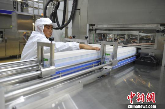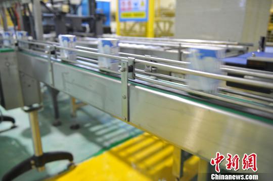 圖為9月7日西藏首個(gè)自主乳制品品牌投產(chǎn)的包裝車(chē)間內(nèi)產(chǎn)品流水線。 張偉 攝