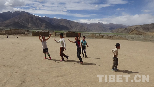 照片里個(gè)子最高的就是夏雜小小足球隊(duì)的隊(duì)長(zhǎng)——貢嘎扎西,本以為他會(huì)是足球隊(duì)的前鋒,誰知他卻是防守的中堅(jiān)力量——司職后衛(wèi)。今天他可解圍了不少威脅球。前排中間這個(gè)剛剛掉了右邊門牙的少年名叫多吉普拉,“別看我牙都沒長(zhǎng)齊,但我是前鋒”。在剛剛結(jié)束的這場(chǎng)夏雜村足球賽中獨(dú)中兩元,他就是夏雜村足球隊(duì)未來的“C羅”。這里——4100米海拔的“魔鬼主場(chǎng)”就是他們的主場(chǎng)。