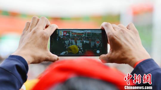 近年,西藏藏戲得到快速發(fā)展,展演活動(dòng)越來越多。圖為8月30日,拉薩雪頓節(jié)藏戲展演活動(dòng)上,一名外圍觀眾因無法觀看到表演,只好高舉手機(jī)進(jìn)行記錄。江飛波 攝