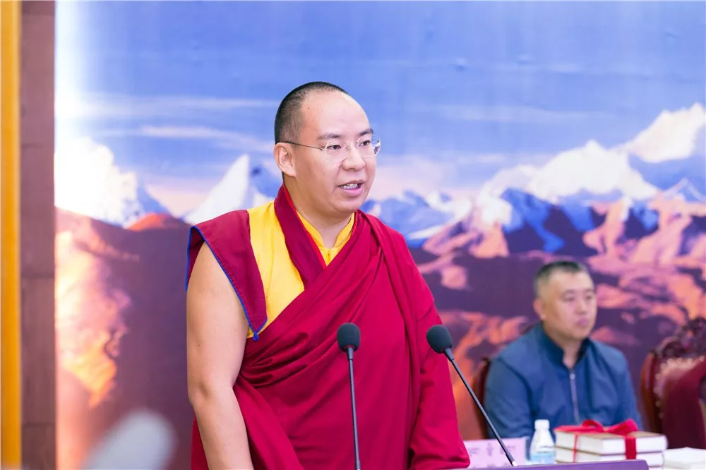 十一世班禪在致辭中指出,歷世班禪是藏傳佛教愛國愛教的一面旗幟。傳承和弘揚(yáng)歷世班禪大師愛國愛教思想,對于推動藏傳佛教再弘期更好地與中國特色社會主義相適應(yīng),推動藏傳佛教更好地為維護(hù)國家統(tǒng)一,促進(jìn)中華民族團(tuán)結(jié),維護(hù)社會和諧穩(wěn)定服務(wù),具有非常重要的作用?!稓v世班禪文集》歷史意義深遠(yuǎn)。以書刊為媒介符合時代潮流,能夠讓廣大的信教群眾,宗教界專家學(xué)者,特別是年輕一代更便捷,更系統(tǒng)學(xué)習(xí)歷世班禪愛國愛教思想的精髓。他希望藏傳佛教界人士,要以藏傳佛教歷代愛國愛教先賢大德為榜樣,感恩黨,感恩祖國,努力聞思顯密精要,為眾生帶來利樂。