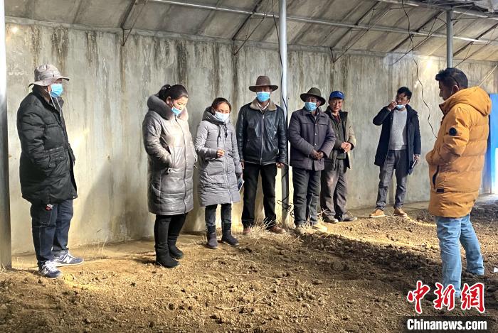 基層菜農(nóng)閱讀西藏自治區(qū)農(nóng)牧科學(xué)院蔬菜研究所技術(shù)人員免費(fèi)發(fā)放的蔬菜種植技術(shù)手冊(cè)。西藏自治區(qū)農(nóng)牧科學(xué)院蔬菜研究所供圖